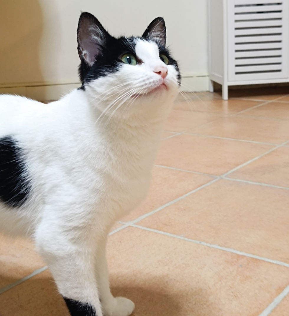 Evenings are when I really come alive. I’ll softly meow to say hi or ask for some love, but I’m never loud. I’m confident and curious — I’ll explore every corner of your home, then find a cozy spot to relax.
