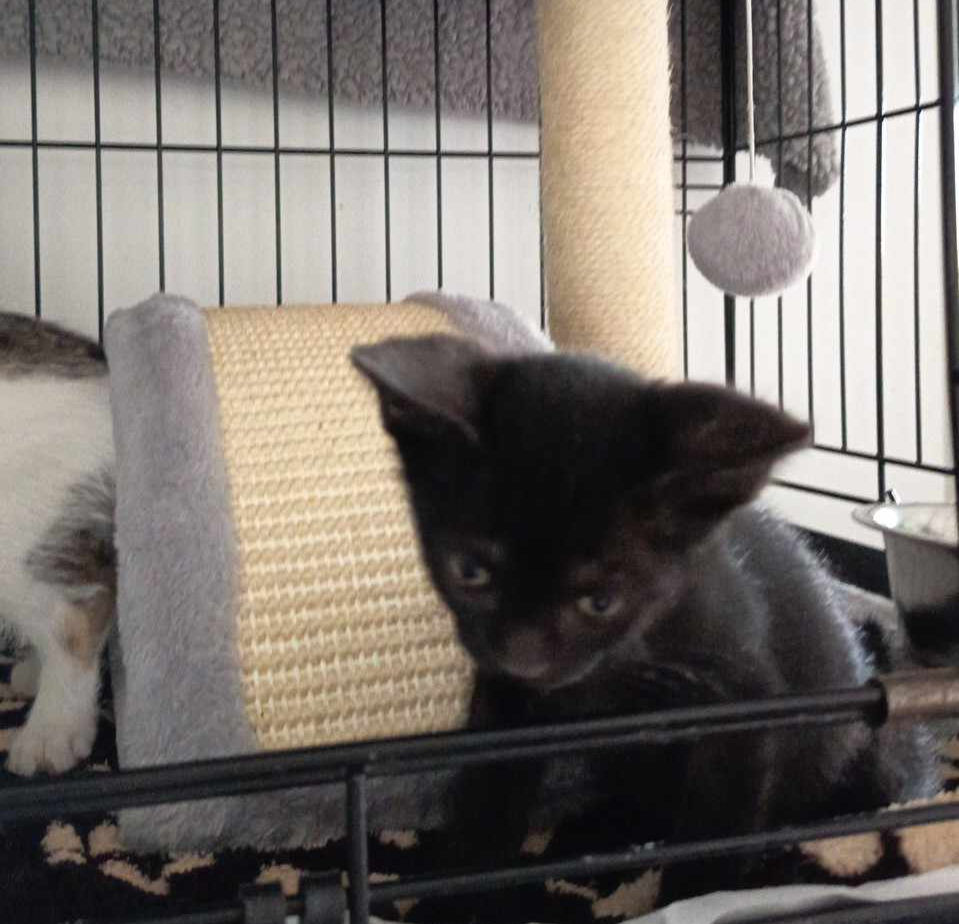 I’m a shy little girl at first, especially with people, but give me a feather wand and some patience and I’ll become your playful little shadow. I’ve become very close with another kitten named Petra — we chase, nap, and climb together all day long. I love cozy cat beds, climbing trees, and a good round of play with other kittens. I’ll even rub against you when I’m feeling especially brave.